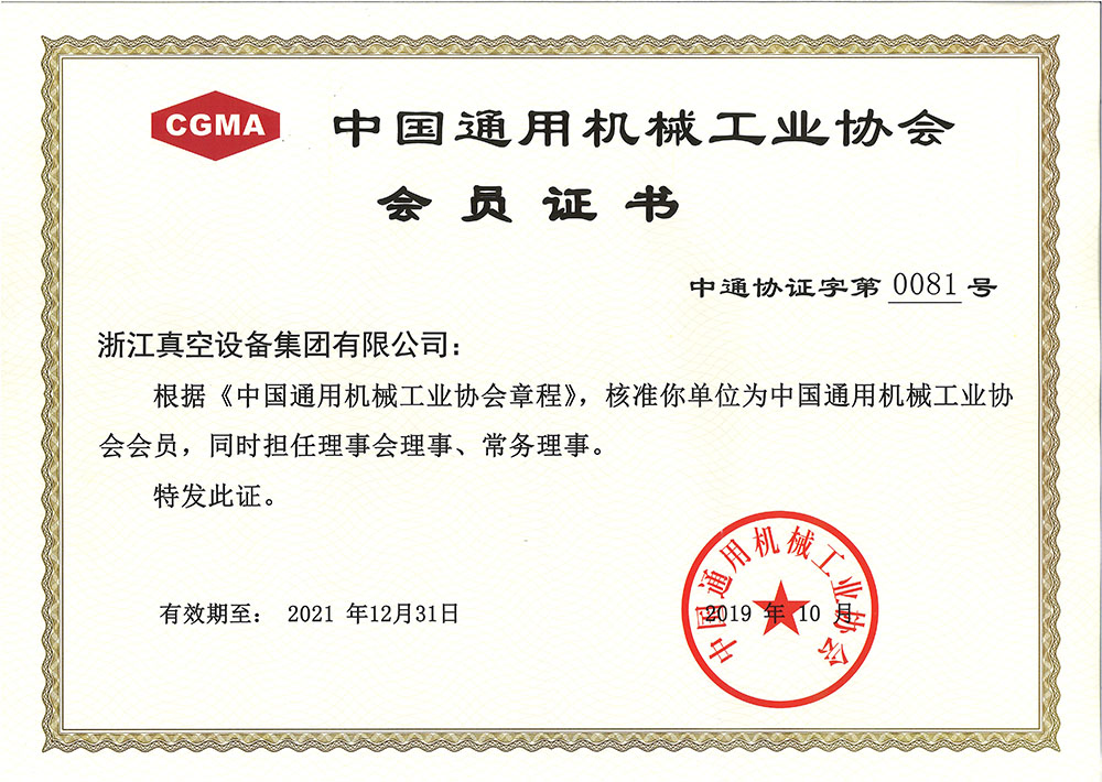 • 中國通用機械工業(yè)協(xié)會會員證書