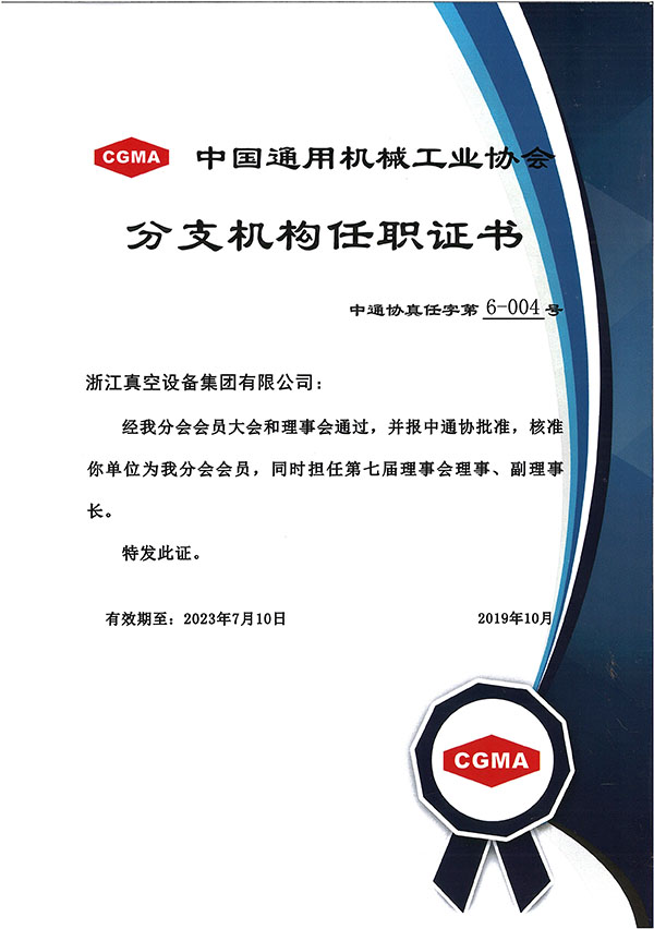 • 中國通用機械工業(yè)協(xié)會分支機構任職證書